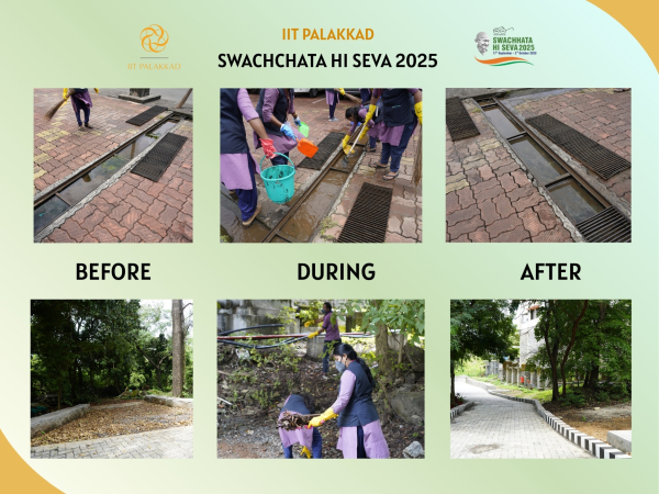 As part of Swachhta Pakhwada (17 Sept – 2 Oct),  the IIT Palakkad community came together for a campus cleaning initiative. With the active participation of our swachhata staff, the drive helped refresh common spaces and reinforced our shared commitment to a clean and green campus.