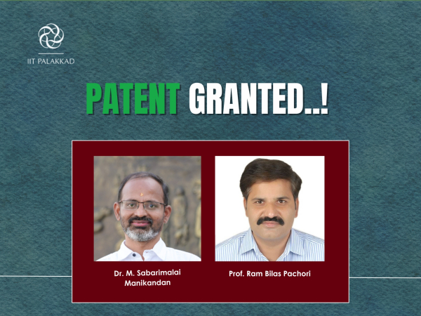Dr. M. Sabarimalai Manikandan, Associate Professor, Department of Electrical Engineering, has been granted a patent for the work on ‘Development of affordable wearable IoT-GPS enabled intelligent vital signs monitor for smart health monitoring services’ in collaboration with Prof. Ram Bilas Pachori, Indian Institute of Technology Indore, sponsored by ICMR, India.